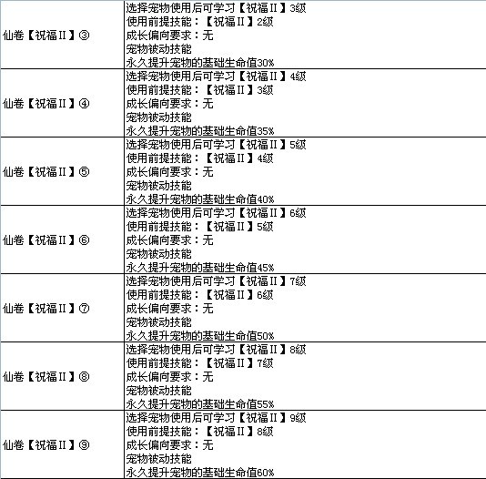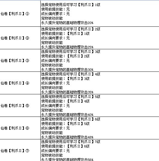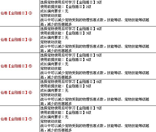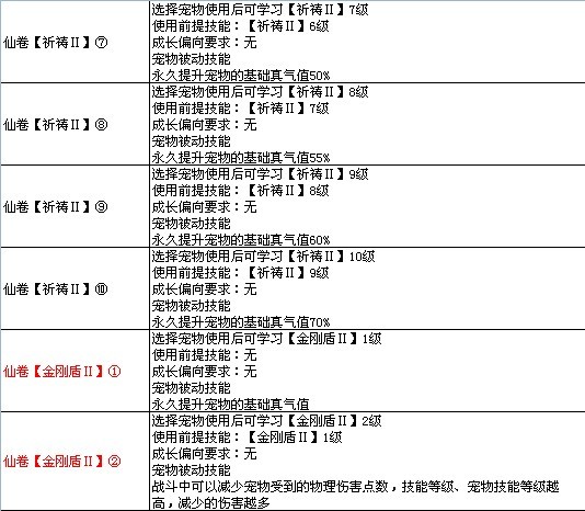7k7k《飘渺仙剑》宠物高级技能图表