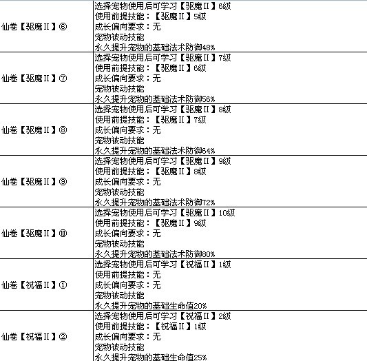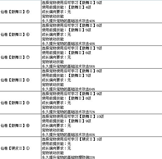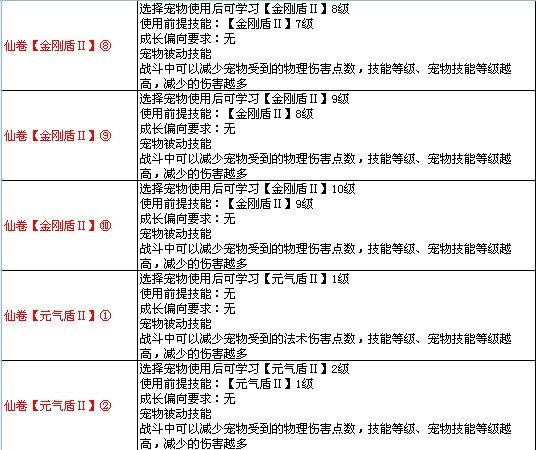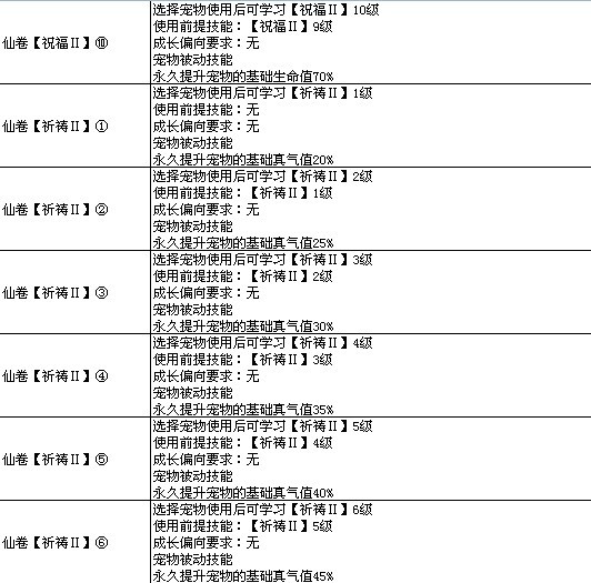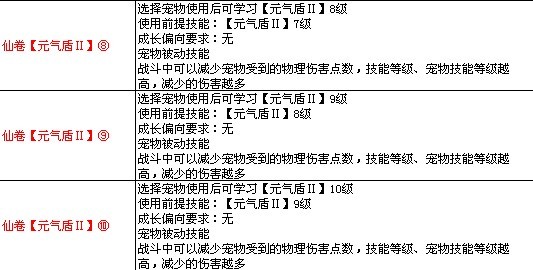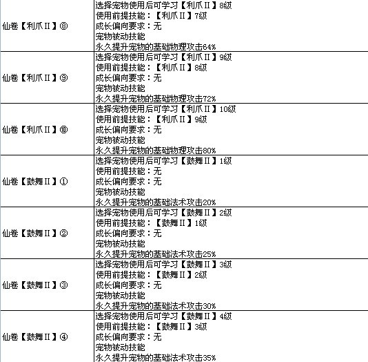 >> 7k7k《飘渺仙剑》宠物高级技能图表