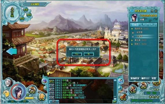在弹出的对话框中选择Yes即删除好友,选择No则放弃删除好友,如下图红圈处。