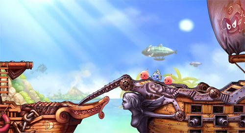 击败船长后,弹友们便收编了来犯的史莱姆王国军舰。某弹友在查看军舰后仓时,却发现船仓里“堆”满了各式各样的宝箱。可能是船长怕船员们趁机偷窃,他便使 用神秘的古老魔法将这些宝箱都悬浮在空中。弹友们想获得这些宝箱,只能通过使用“飞机”道具来获取。从画面上我们可以清楚的看到,最上面一层的宝箱是价值 最高的。能拿多少,就要看各个弹友的本事咯!