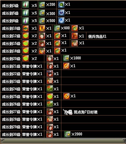 备注:本活动其实就是成长奖励。到了等级后可以到官府NPC领取奖励。
